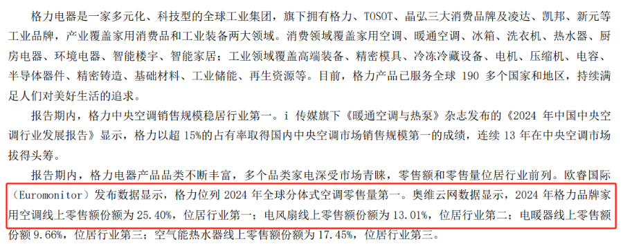 记者还联系了格力文传、奥维云网,但前者未获接通。奥维云网相关负责人对记者表示,美的集团和格力电器2024年度财报引用奥维云网数据为不同维度。