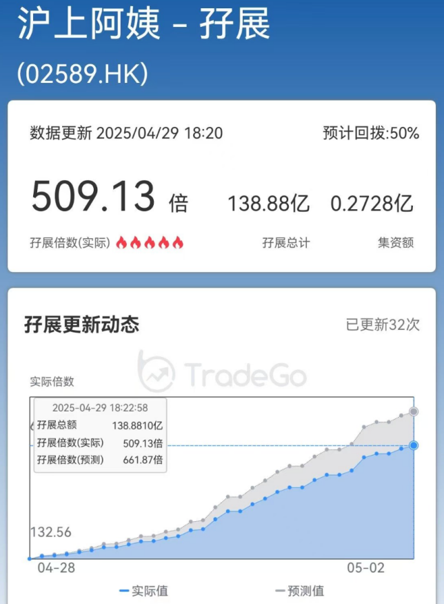 按照计划,沪上阿姨将于5月8日正式在港交所挂牌,成为第六家上市茶饮。自4月28日启动招股后,投资者对沪上阿姨的打新热情不断攀升。根据捷利交易宝数据,截至4月29日18点23分,沪上阿姨共获券商借出孖展近139亿港元,超额认购509倍!