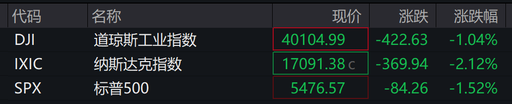 美股三大指数大幅低开。纳斯达克指数跌超2%,道指、标普500均跌超1%。