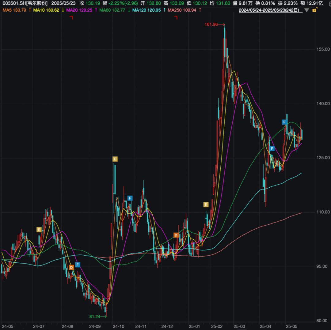 同样在5月23日,韦尔股份还发布了《关于2025年股票期权激励计划授予登记完成的公告》,此次授予人数是3361人,授予股份数量是1998.34万份,行权价格是139.29元/份。