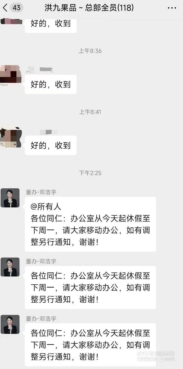 2024年3月20日洪九果品宣布停牌后,公司经营也很快停摆。周琦回忆,停牌后其所在部门的工作就暂停了,清明节后4月份走了很多人,包括业务部门也有不少员工离职,“停牌前有400多人,到4月份就减到了100来号人。”