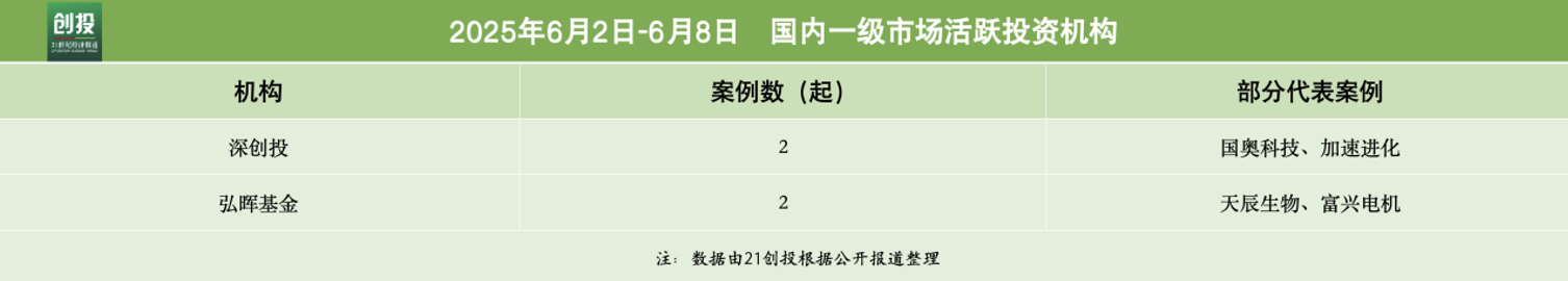 从机构投资活跃度来看,本周深创新投完成2笔投资,投资对象均为科技公司。弘晖基金完成2笔投资。