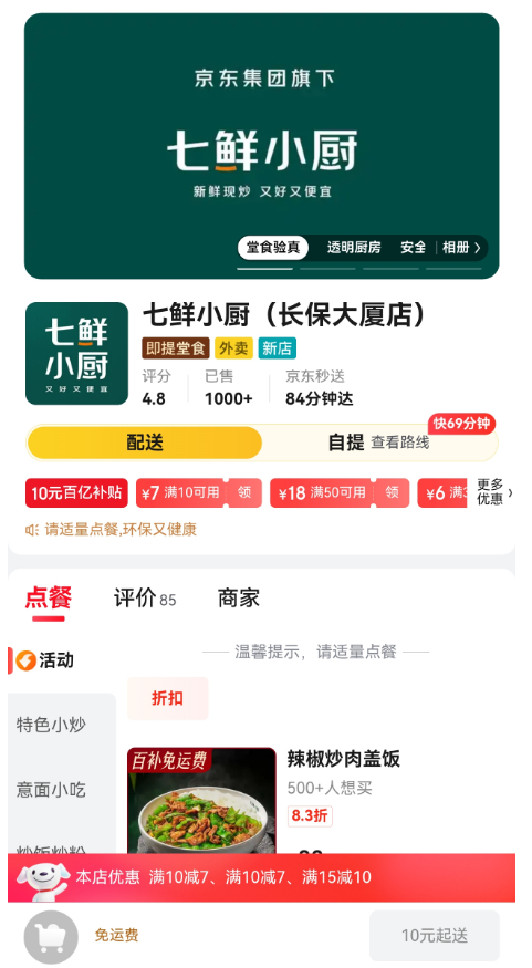 此外,针对七鲜小厨没有提供堂食服务却可入驻京东(JD)外卖的情况,刘斌表示,京东(JD)外卖始终坚持“品质外卖”的定位,入驻的餐饮商家需要满足三种情形之一:高分堂食餐厅、品牌即提、线下即提,这些品牌门店都需要经过线下客流的检验。“我们的标准从来没有变过。”