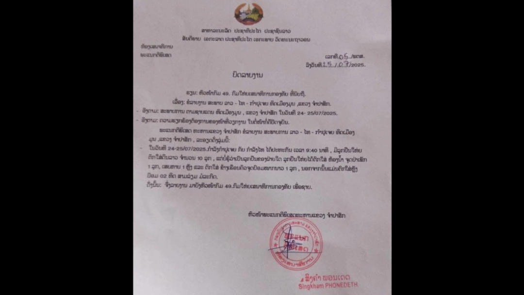 老挝军方26日发布紧急通报称,老挝军队在老挝占巴色省与泰国乌汶府交界地区,与数名非法越境的柬埔寨武装分子爆发激烈交火,拘捕10人并缴获武器。