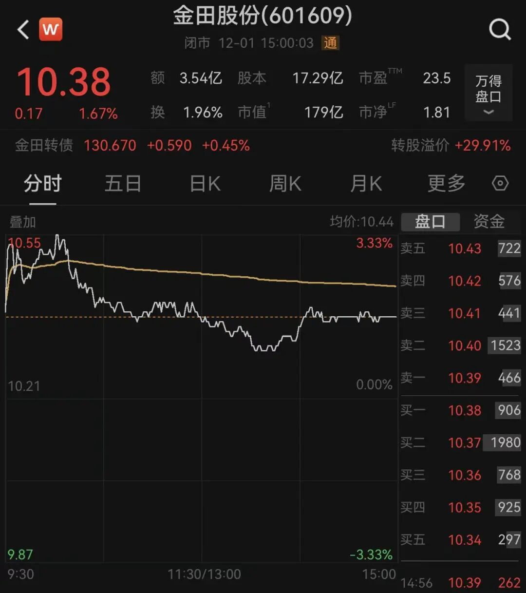 二级市场上,金田股份股价12月1日涨1.67%,报10.38元,最新市值为179亿元。