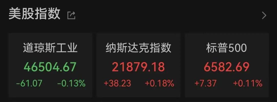 4月2日,美国三大股指逆转,从开盘的集体大跌到最终涨跌不一,道指(DJI)跌0.13%报46504.67点,标普500(SPX)指数涨0.11%报6582.69点,纳指涨0.18%报21879.18点。