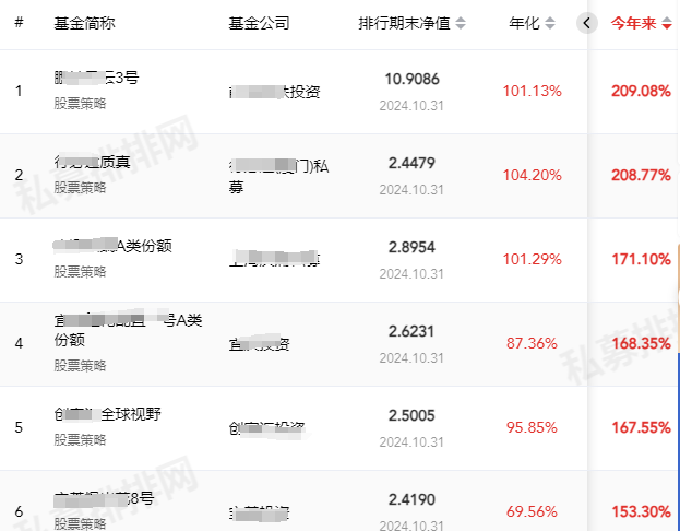 来自私募排排网的最新统计数据显示,截至12月5日,在该第三方机构纳入监测的1237只股票策略主观多头私募产品中,共计有1010只产品在2024年以来取得正收益,占比81.65%。尽管年内多数主观多头私募产品均实现盈利,但不同产品业绩的“离散度”仍差异巨大。数据显示,截至目前,今年业绩排名十强产品的收益率门槛达132.25%,二十强产品的收益率入围数字为88.13%,全行业冠军产品年内收益更高达209.08%。